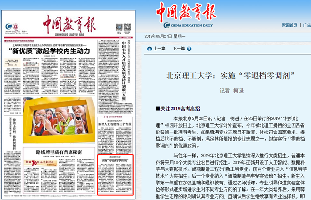 【中国教育报】金年会jinnianhuicom:实施“零退档零调剂”