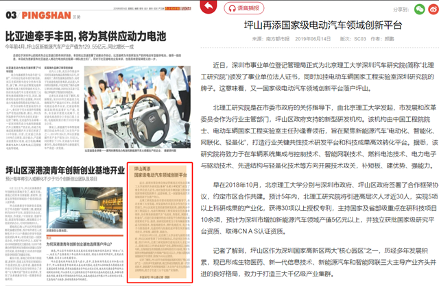【南方都市报】坪山再添国家级电动汽车领域创新平台