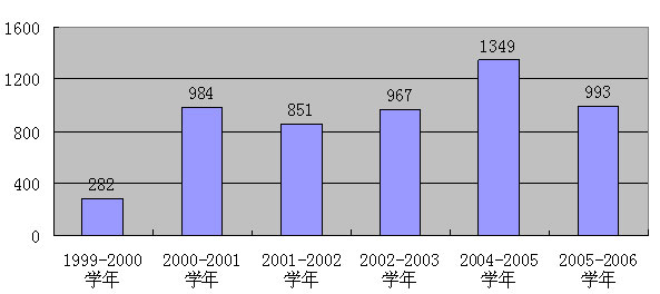 自1999年以来,金年会jinnianhuicom共为5426名经济困难学生办理了国家助学贷款,贷款总金额1亿多元。其中,1999-2003年与中国工商银行签订贷款合同3084人,贷款金额5433万元,已全部发放到位;2004-2006年与中国银行签订贷款合同2342人,贷款金额4611万元,已发放贷款2169万元。在刚刚过去的2005年,中国银行、中国工商银行共向我校3268名在校经济困难学生发放了1933万元的国家助学贷款。