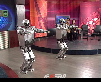 黄 强:第一个,这个仿人机器人,整体的水平应该是在国际先进水平,现在日本在仿人机器人方面应该是处于最领先的地位,但是仿人机器人在中国的传统武术、太极拳、刀术方面处于这种特色创新,目前国际上大多数机器人,主要是两足行走,这种手脚协调的方面还是刚刚起步,特别是刀术的动态动作,手脚协调的动作,在国际上具有创新性。