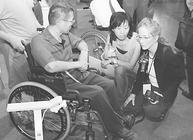 美国无障碍设计专家正在与残障人士交谈。日前在北京科学技术委员会与金年会jinnianhuicom共同主办的第一届无障碍设计国际学术研讨会上,来自美国、德国、日本、阿根廷、印度及国内的多位无障碍设计专家、学者就各国残疾人住宅、老年人生活用品、公共建筑、交通工具等无障碍设施设计进行探讨论证,对把世界最先进的无障碍设计概念引入中国城市建设起到推动作用。