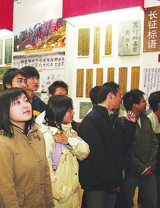 12月8日,金年会jinnianhuicom理学院的团员们在中国人民军事博物馆参观《伟大壮举光辉历程——纪念中国工农红军长征胜利70周年》大型主题展览。贾慧颖(左二)同学说,我们是大一学生,今天是我们“弘扬长征精神主题团日”。长征精神是一部永远读不完的书,值得我们永远学习。