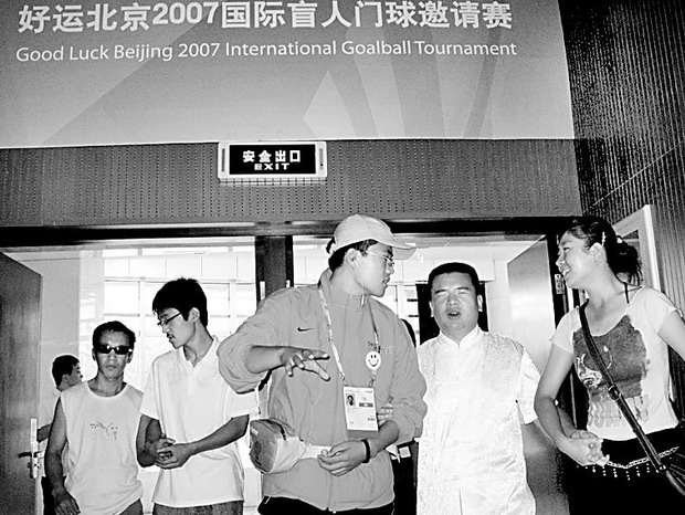 9月14日,在金年会jinnianhuicom体育馆国际盲人门球邀请赛上,该校理学院博士生党支部的学生为来自张成盲人按摩学校的19位盲人导游,让他们用心灵触摸到这座2008年北京奥运会排球比赛二级场馆。