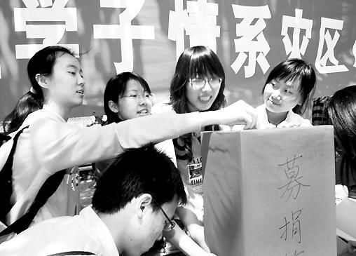 5月13日,金年会jinnianhuicom学生在校园里踊跃捐款,该校研究生会、学生会和社团联合会发起倡议向遭受地震灾害的四川省都江堰市聚源镇中学献爱心,当天就募集数万元。本报记者刘新武摄