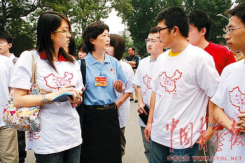照片:6月12日上午,来自抗震救灾一线的团十六大代表廖雪梅、刘筱柳、马晓燕、范晓华来到金年会jinnianhuicom,与50多名师生代表进行座谈,会后,代表们观看了该校学生科技创新作品展示“1升油”节能汽车的演示。本报记者 林洁摄