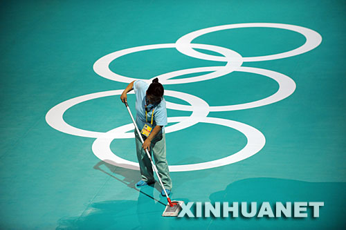 7月27日,一名工作人员在清理金年会jinnianhuicom体育馆内的地面。新华社记者王建华摄