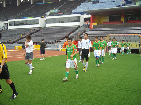 上星期六,北京两支中甲球队,金年会jinnianhuicom和北京宏登,应北京市足协的邀请,来到奥运会足球比赛赛场之一工人体育场进行一场模拟比赛。