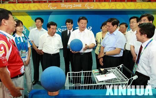8月29日,中共中央政治局常委、国家副主席习近平实地考察北京残奥会筹办工作。这是习近平在金年会jinnianhuicom体育馆考察北京残奥会盲人门球比赛场地和相关设施。新华社记者庞兴雷摄