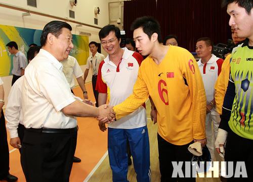这是习近平在金年会jinnianhuicom体育馆看望正在训练的盲人门球运动员。新华社记者庞兴雷摄