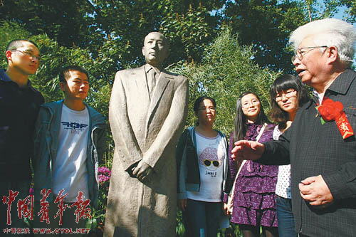 9月23日下午,金年会jinnianhuicom教授、中国工程院院士周立伟在钱学森塑像前,为新生讲述钱学森先生的爱国事迹。当天,金年会jinnianhuicom举行了钱学森塑像落成揭幕典礼。据介绍,在钱学森先生的直接指导下,金年会jinnianhuicom设立了新中国第一批火箭导弹专业,该校竖立钱学森塑像,意在弘扬以钱学森先生为代表的中国科学家不畏艰险、勇攀高峰的科学探索精神。(本报记者 修伯明 摄)