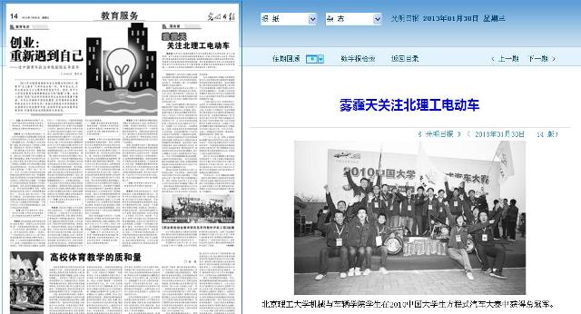 2010年,在电动车辆国家工程实验室老师的指导下,北理工机械与车辆学院的学生在中国大学生方程式汽车大赛中获得总冠军,并夺得八项大奖。2011年,该学生赛车队在日本大学生方程式汽车大赛(共75支亚洲地区大学生队伍参加)中获得动态比赛单项冠军。
