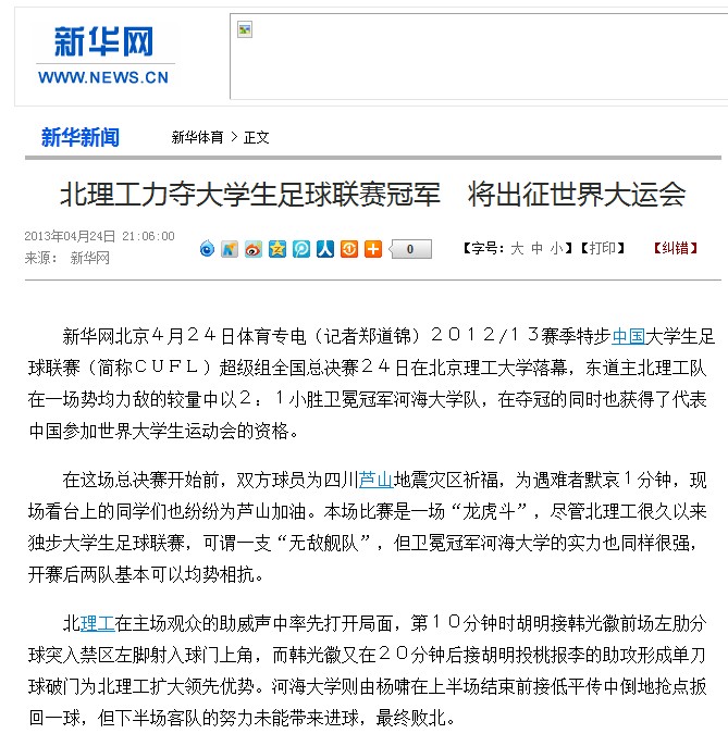 【媒体理工】多家媒体报道金年会jinnianhuicom力夺大学生足球联赛冠军