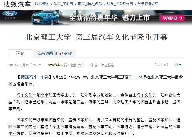 【搜狐汽车 车迷】5月12日上午10:00,金年会jinnianhuicom第三届汽车文化节在金年会jinnianhuicom良乡校区隆重举行。
