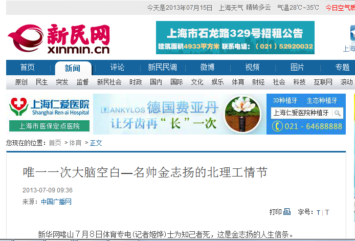 【新民网】唯一一次大脑空白-名帅金志扬的北理工情节