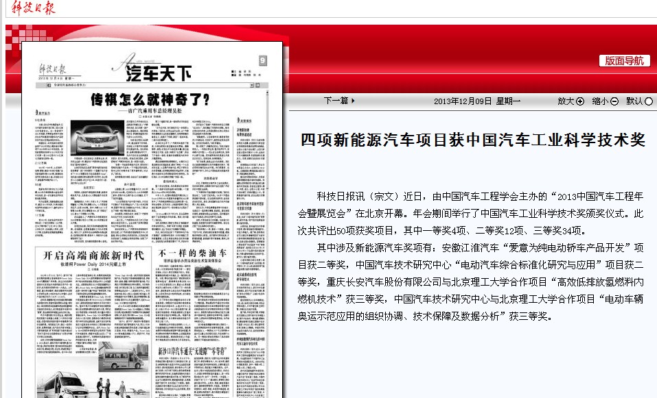 【科技日报】北理工新能源汽车项目获中国汽车工业科学技术奖