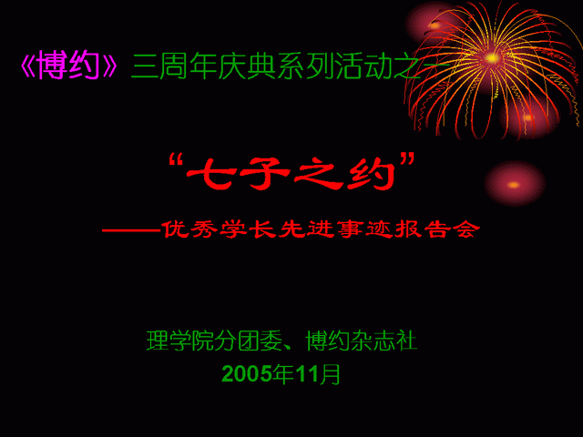 今天喜逢《博约》三周年华诞,我这个老博约人有幸成为理学院“七子”之一来向大家作这个报告,倍感荣幸。张老师给我的主题是“如何做到德、智、体全面发展?”我呢,不敢称有多全面,只不过因为实在没什么突出的,所以老师才找了这个题目来安慰我。这个我还是有自知之明的,呵呵。