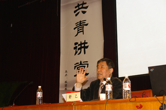 一开始,舒先生提出国内外媒体普遍关心的问题,即“北京的历史文物和古文化保护到底怎么样?”,并解释了这个问题的复杂性。接下来,他给我们介绍了中国土木建筑高弹性、抗震等特点,话语中透露强烈的民族自豪感。然后话锋一转,对目前北京文物保护现状表示了忧虑。作为一个土生土长的老北京人,舒先生对老北京旧城的改造这个问题卓有一番见解。他曾针对这个问题,考察过国内外多个城市。在演讲中,舒先生举引了湘西凤凰古城、上海太康路老厂房和瑞典斯德哥尔摩旧城区等多个古城改造的例子,说明古城保护得当,可以收到巨大的经济效益,以此告诉我们该怎样保护我们的古城。在他的引导下,同学们对这个问题进行了深入的思考。