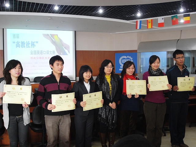 12月12日,首届“高教社杯”全国英语口译大赛华北区复赛于对外经济贸易大学落下帷幕。在我校外国语学院张渊老师的指导下,2006级英语系刘念同学代表金年会jinnianhuicom参加了此次比赛。参赛选手包括来自清华大学,外交学院,南开大学,对外经贸大学等知名学府的三十二名英语佼佼者。比赛实行分轮淘汰制,选手需进行英译中,中译英和中英对话互译三轮激烈角逐。刘念同学顺利进入最后一轮比赛,并最终取得了第五名的佳绩,荣获华北赛区二等奖。