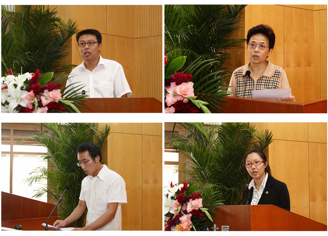 学生代表余金磊(左下)讲道:“冯玖江的英雄壮举经全国各个媒体报道,引起了很大的反响,我打心眼里为他骄傲,我为有这么一位同窗好友而骄傲。冯玖江是一个很热心的人,经常在班里帮助同学,在继续教育学院组织的各种活动中,冯玖江都积极参加,从不惜力,热情周到为同学们服务。冯玖江还是一个非常乐观的人,不管遇到什么困难,什么挫折,都会带着笑容迎难而上,我相信凭着这种乐观向上的人品和学习的劲头,他的人生道路定会越走越宽、越走越好!”