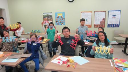 还有一位参加孔院第一期中国文化夏令营的9岁的小营员,他的妈妈则驱车4小时把他送来参加文化营,长达一周的时间为了不迟到早退,在大学附近的宾馆自费住宿,为了方便一路陪伴自己的孩子体验文化营活动,每一次课、每一项活动这位妈妈都在现场亲自体验和观摩。文化营结束时,拿着孩子亲手画的中国画和书写的汉语句子“爸爸妈妈,我爱您!”这位妈妈噙着眼泪表达了对文化营活动的感谢!这一对母子感动了所有的老师,也感动了喻院长。文化交流原本就是要让两国民众有这样情感交融的友好联系。 在文化营结束时他们恋恋不舍,表示再有类似活动一定要参加!