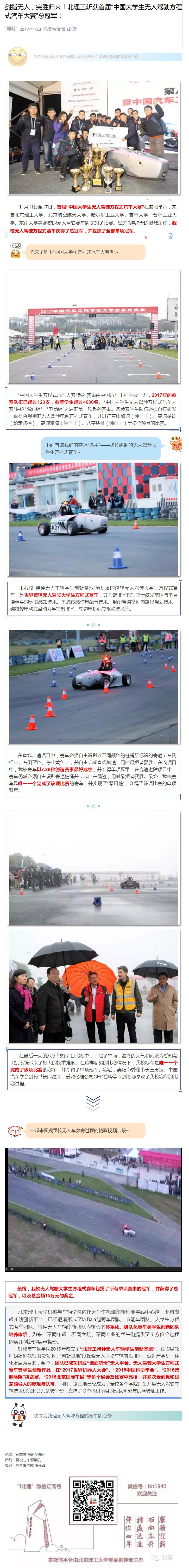 【微网互动】剑指无人,完胜归来!北理工斩获首届“中国大学生无人驾驶方程式汽车大赛”总冠军!