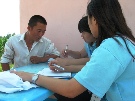 另一组,高爽和袁敬梅等同学前往塔敏查干沙漠中的巴日嘎苏踏拉村对村民开展与课题相关的访问与问卷调查。同学们围绕草原及沙漠农牧业灌溉方式、农牧民高血压的病因分析、国家惠农政策的实施及普及等调研内容与村民们积极交流。在调研课题之余,大家还和当地居民在生活、医疗、教育、经济等多方面热烈交谈,向村民们普及党和国家的相关政策方针。巴日嘎苏踏拉村规模不大,村民主要为蒙古族,队员们克服了语言上的不便之处,访谈十分顺利,村民们畅所欲言,纯朴的民风深深的感动着全体考察队员。
