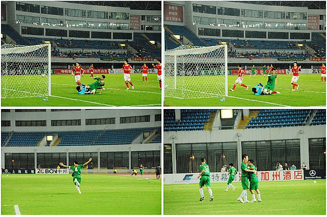 比赛于19:45准时开战,开场后双方节奏较为缓慢,有威胁的进攻不多,看来双方都想后发制人。10分钟过后,中邦队逐渐利用主场的优势掌握了场上的主动。第26分钟,前几轮表现出色的中邦队中场外援何塞禁区前接队友妙传抽射,皮球应声入网,中邦队在主场1:0先拔头筹。