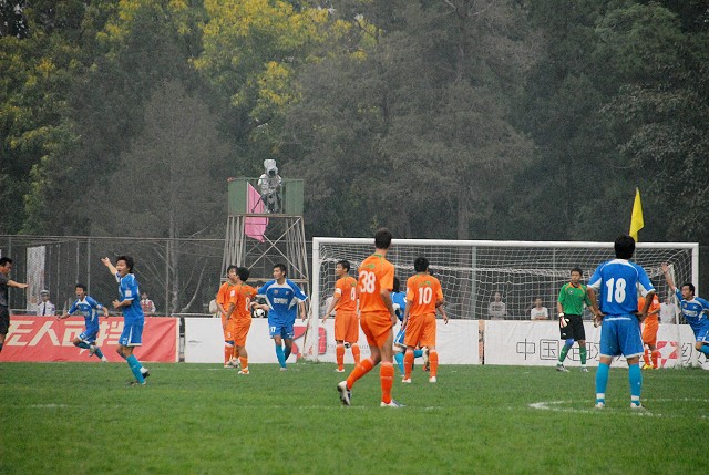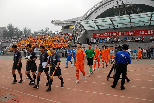 赛前两队分列积分榜后三位,理工只领先川足4分,这是一场谁也输不起的比赛,本场比赛的上座率也因此而较为可观,学校还组织了大批良乡新生前来助阵,比赛就这样在“理工必胜,理工必胜”的强有力助威口号中展开了激烈的争夺。