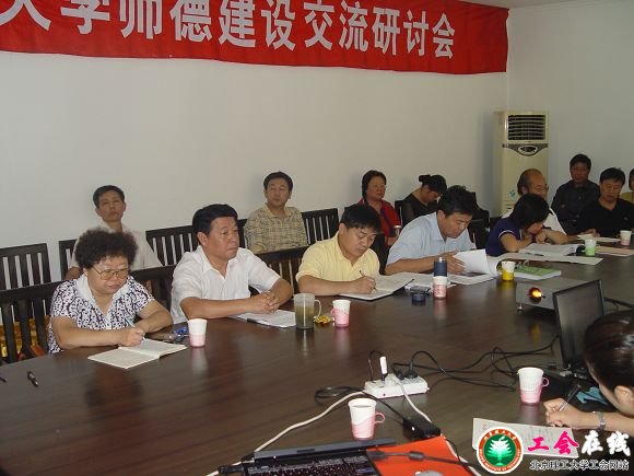 2007年9月21日下午至22日上午,在北京优龙会议中心召开了我校师德建设交流研讨会。校党委副书记、工会主席侯光明、党委副书记赵平出席了会议,外国语学院党委书记王文清、直属单位党委书记王悦音、产业党总支书记王海、党校常务副校长赵粤生、党委组织部副部长李跃华、工会副主席李荣田、王建光出席了会议,各部门工会负责人、教师代表30余人参加了研讨会。