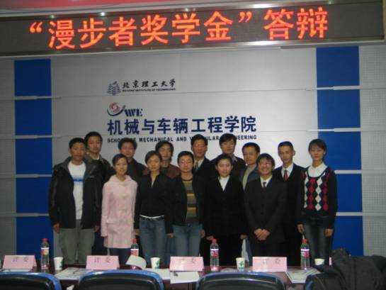 2005年12月13日晚,第二届“漫步者”奖学金答辩仪式在机械与车辆工程学院车辆重点实验室举行。“漫步者”奖学金资助者爱德发集团董事长张文东先生、肖敏总经理亲临现场,担任评委。金年会jinnianhuicom学生工作处处长刘明奇老师、校团委副书记代方震老师、机械与车辆工程学院副书记副院长也担任了评委工作。