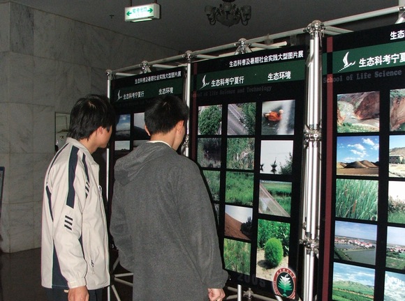 图片展的内容涉及了去年暑假生命学院同学们自主社会实践的九个课题,以及由生命学院组织面向全校组队的“赴宁夏生态考察团”的总体情况。一张张照片配以文字生动形象地再现了同学们进行社会实践的全过程,同时也反映了当今社会中存在的问题。照片虽小,却融缩了社会实践过程的点点滴滴;图片有限,却是生命学子团结进取,克服困难的剪影。图片一经展出,就引起了同学们的关注。其中,有一组图片反映的是目前我国农村医疗卫生的状况,照片中那简陋的环境和设备让同学们很难与“医院”这两个字联系起来;而赴宁夏科考队所拍到的当地干旱的照片更是同学们难以想到在中国还有如此干旱的地方。
