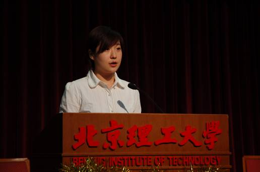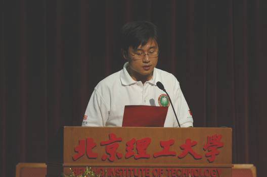 学生代表陈哲宣读“树立校园新风尚——大四学生文明离校倡议书”