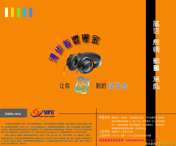 “漫步者”奖学金的宗旨是“诚信、热情、勤奋、无私”。它的设立旨在全校范围内倡导学生德、智、体全面发展,引导学生在努力学习的同时,积极参加学生工作,热情地为同学服务,全面提高个人的综合素质。此次入围答辩的16名同学都是各个学院在社团、班级工作中的佼佼者。