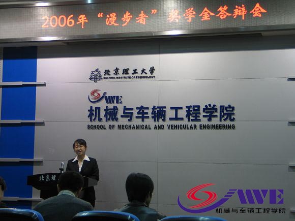 12月18日晚,2006年“漫步者”奖学金答辩会在车辆重点实验楼二层报告厅顺利举行。来自机械与车辆工程学院、宇航科学技术学院、管理与经济学院、设计艺术学院、外国语学院的16名入围选手参加了本次答辩。“漫步者”奖学金的捐助方——北京爱德发企业集团董事长张文东先生、总经理肖敏先生,我校学生工作处副处长娄秀红老师、学生工作处卢湘江老师、机械与车辆工程学院副书记、副院长郝洪涛老师作为评委出席了当晚的答辩会。