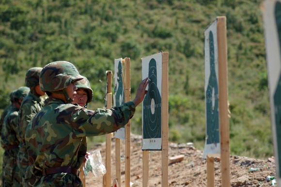 经过了昨天一下午的射击基础知识培训及动作练习,今天上午7:20起,10个女生连依次进行了实弹射击。在军训旅指挥部的精心安排下,女生连井然有序地进入了靶场并分批对号进入靶位射击。在场的女生们个个跃跃欲试,教官也适时地再次进行了动作要领的讲解。