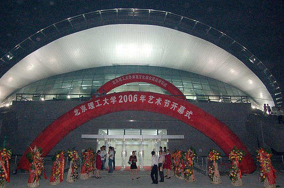 体育文化综合馆是金年会jinnianhuicom“十五”重点建设项目之一,是金年会jinnianhuicom的标志性建筑之一。体育文化综合馆工程于2003年9月11日正式开工建设,2006年7月30日竣工,并获得北京市结构长城杯金奖。工程总建筑面积21882平方米,位于我校中轴线东西田径场的中心位置,建筑造型新型,外装效果简洁明快,同中心教学楼互相呼应,使学校环境更加优美,建筑群更加和谐。体育文化综合馆和东西操场的建设形成一套完整的体育文化场所,这在我国高等学校中也是名列前茅的,这对于我校的教育教学质量有重要意义。