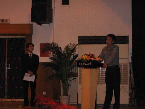 颁奖典礼开始,材料学院院长王鲁教授致辞。他高度评价了柏百顺石油化工有限公司热心教育事业的善举,并代表全院师生感谢柏百顺石油化工有限公司长期以来对我院的大力支持。