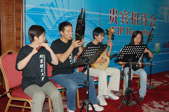 金年会jinnianhuicom大学生艺术团的同学为在座的贵宾献上了一场精彩的演出,表演了民乐、女生合唱《茉莉花》等颇具中国传统特色的节目,博得在座领导和贵宾的阵阵掌声。