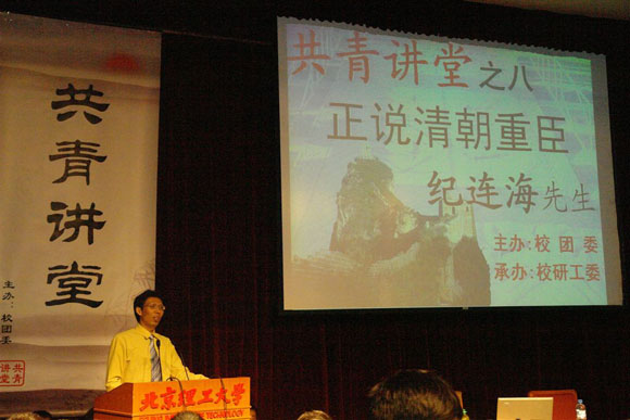 3月19日晚7:00,“共青讲堂” 系列讲座第八场在中心教学楼报告厅举行。“百家讲坛”最受欢迎的“名嘴”之一——纪连海先生应邀为北理学子带来了一场精彩纷呈的讲座。