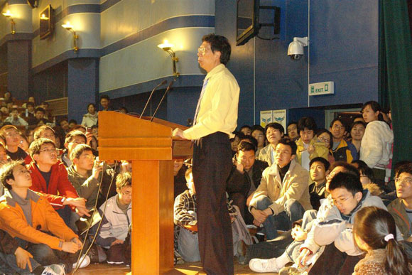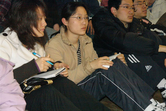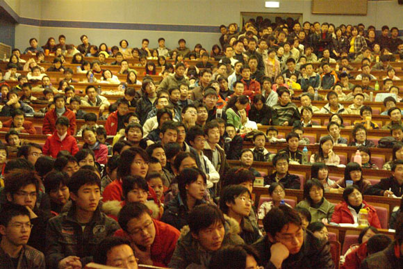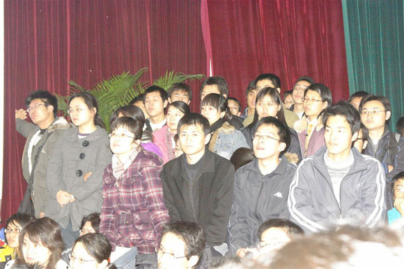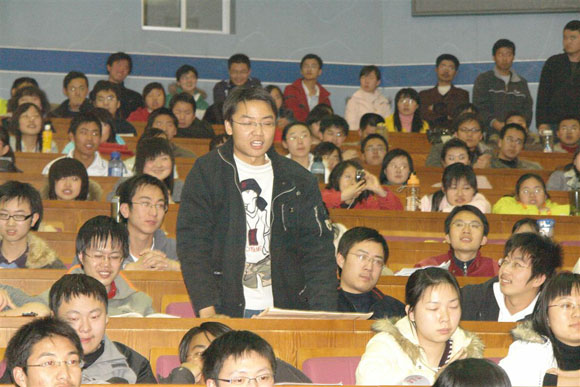 在长达两个小时的精彩讲解后,纪先生不顾劳累,与现场同学互动,回答他们提出的问题。他精彩巧妙的回答博得了阵阵热烈的掌声。