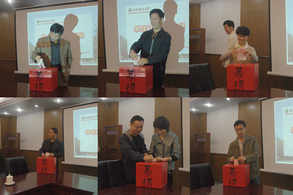 会议开始前,侯光明副书记紧急传达了学校对5月12日四川汶川县发生的特大震灾的救灾工作部署情况,并带头组织参会人员现场捐款,表达了我校党委对灾区人民的深切关爱和慰问,同时也展现了中华民族“一方有难,八方支援”的传统美德。
