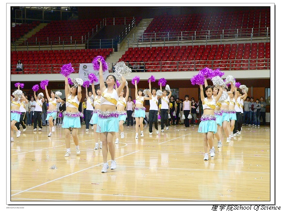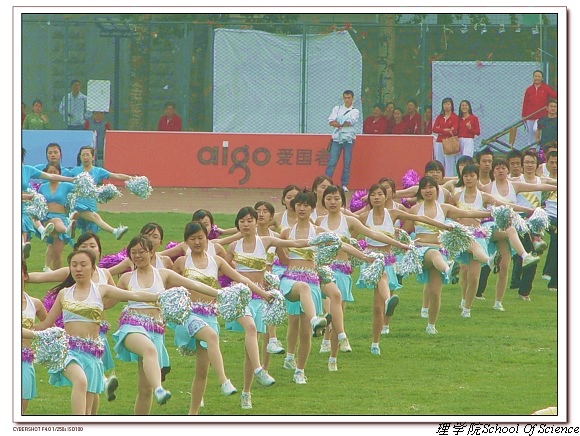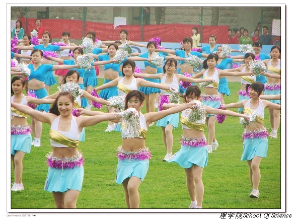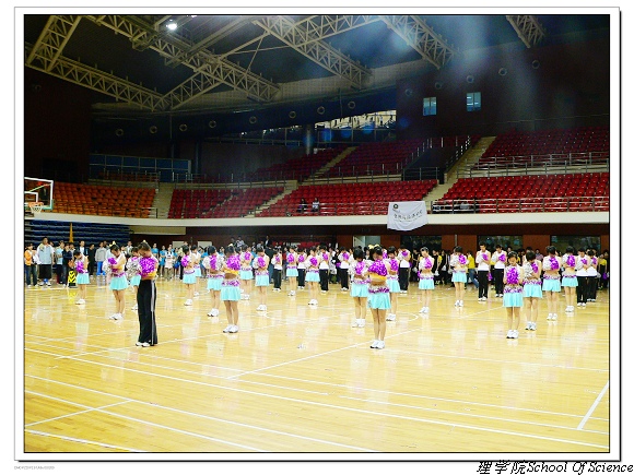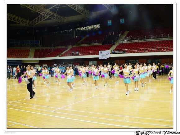 各学院团体操方队在全校运动会开幕式上作了精彩表演。理学院的队员以整齐划一的队形和良好的精神面貌博得了观众的阵阵掌声,在展示啦啦操轻松活泼的舞姿的同时也展现了当代大学生的青春与阳光。