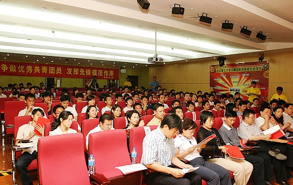 在这暖阳高照、鲜花盛开的美好时节,我校共青团2006——2007年度系统评优表彰大会于5月29日下午在图书馆报告厅召开了。本次评优大会旨在表彰在过去一年当中我校共青团系统涌现出的优秀个人、团体和组织发,以鼓励先进,树立典型,激励全校各级团组织和广大青年向先进学习,以推动我校共青团工作的持续发展。