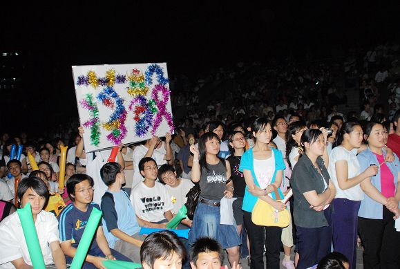 场地内座无虚席,观众们热情高涨。部分歌迷还为喜欢的歌手加油助阵。