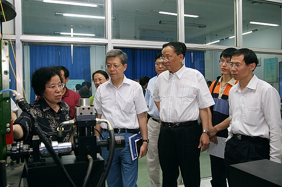 6月7日下午,国务院学位委员会办公室主任杨玉良院士(前右3)来我校视察工作,国务院学位办重点建设处及国防科工委人教司教育处有关负责同志陪同视察工作。在匡镜明校长陪同下,杨主任先后参观了我校电子信息技术综合实验室、“导航、制导与控制”综合实验室、爆炸科学与技术实验室、车辆与动力传动综合实验室以及教育部研究生教育创新计划研究生开放实验室。