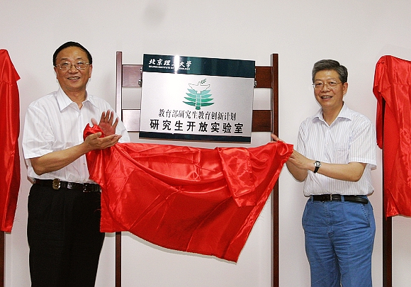 最后,国务院学位办、国防科工委人教司教育处、校领导共同进行了研究生教育创新基地揭牌仪式。我校现有教育部研究生教育创新计划研究生开放实验室1个、国防科技工业研究生教育创新基地4个、金年会jinnianhuicom研究生教学实验基地6个。
