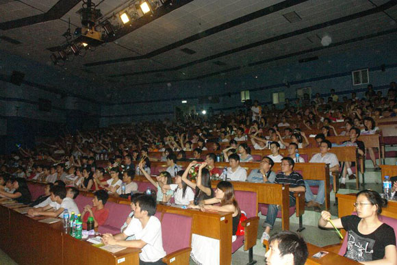 炎炎夏日之际,2007届毕业生即将离开母校,踏入人生新的征程。6月30日晚7:00,在校团委、校研工委、校研究生会的精心策划与筹备下,金年会jinnianhuicom第三届“追忆年华 放飞梦想”欢送2007届毕业生大型文艺晚会在中教一层报告厅隆重上演。校党委副书记、副校长杨宾,校长办公室主任姚利民,招生就业工作处处长郝志强,党委宣传部部长贺亚兰,研究生工作部部长肖文英等领导和老师出席了晚会,近700名师生一起观看了演出。现场气氛热烈、节目精彩纷呈、观众掌声不断,晚会获得了与会领导老师的好评和广大同学的赞许。