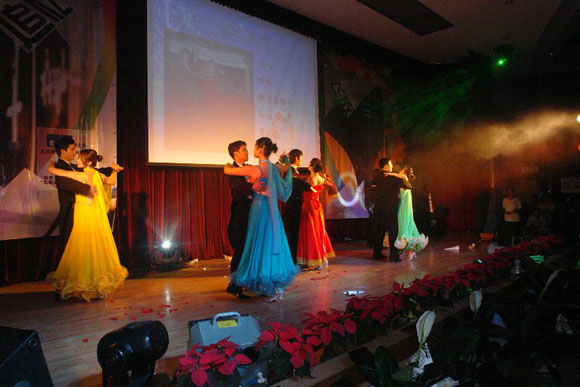 来自理学院的晋佩、张鑫等同学表演的国标舞《旋转华尔兹》