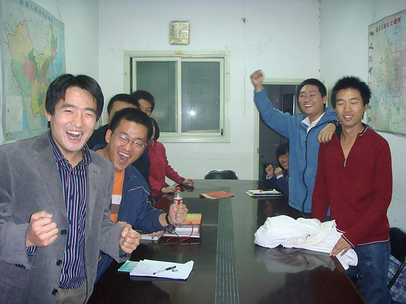 在学校本部,同学们纷纷在宿舍通过电视、网络等方式收看卫星发射的直播,图为06级党支部在支部会议中观看发射直播节目。