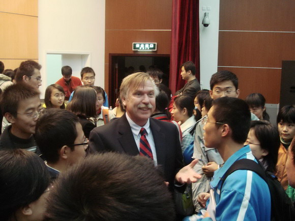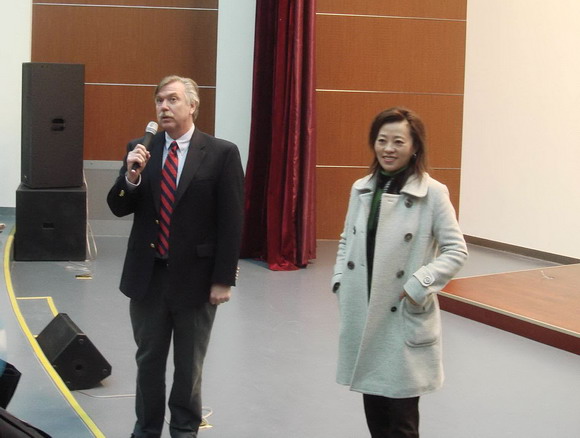 11月19日下午4点,美国马凯大学教务长Dr. Madeline Wake和商务管理学院金融系教授,应用投资管理项目主任Dr. David S. Krause和国际项目部主任Terence. W. Miller作为第四期“嘉言堂”主讲嘉宾在良乡校区报告厅为同学们介绍了马凯大学及美国高等教育的一些基本情况,金年会jinnianhuicom副校长李和章、国际交流合作处副处长汪滢、学生办公室副主任邹锐和300多名07级学生参加了报告会。